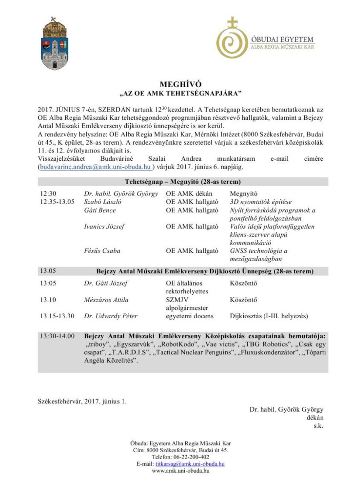 Meghívó az OE AMK Tehetségnapjára