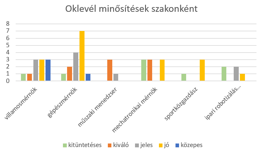 • Eredmények:1 kitüntetéses, 1 kiváló, 3 jeles, 3 jó és 3 közepes minősítésű oklevél.