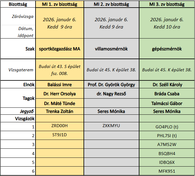 Záróvizsga csoportok előzetes beosztása: