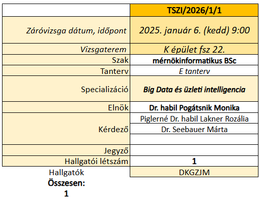 Záróvizsga csoportok előzetes beosztása: